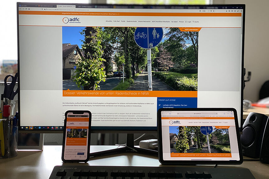 Gegenüber der alten Seite des ADFC NRW hat sich einiges getan. Wir hoffen, dass Sie sich schnell zurecht finden. Über Anregungen und Verbesserungsvorschläge freuen wir uns sehr. Melden Sie sich bitte unter presse [at] adfc-nrw.de